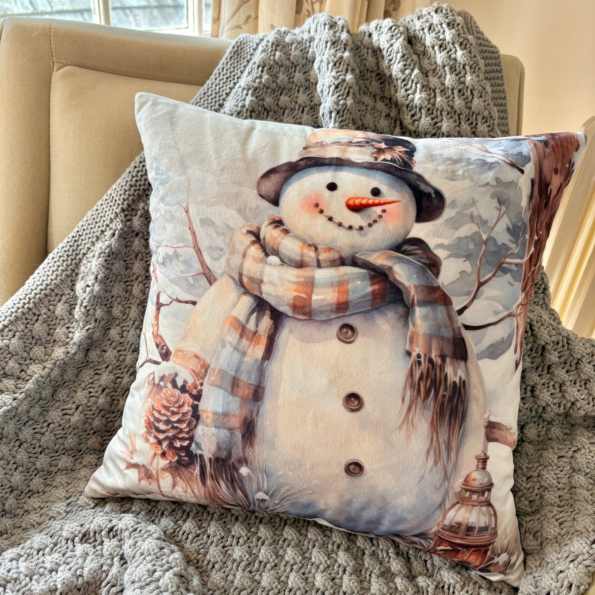 Neutral Snowman Velvet Cushion
